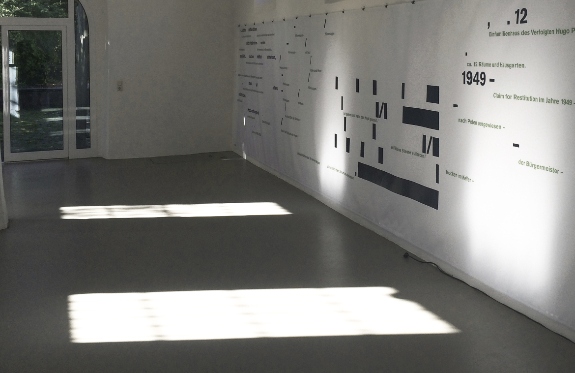 an introduction to the topic with a timeline biographical documents, ten documentary films, literary take away texts by the writer esther dischereit, three rolling boxes with drawers containing documents and explanatory texts: they invite visitors to browse and discover.