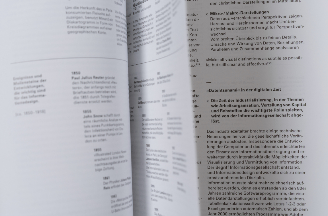 information design visualises content in an understandable way, it sets priorities and directs the viewer’s attention. to this end, designers have various forms of presentation at their disposal, which are systematically and compactly presented and analysed in this book using over 200 visualised examples. with just the right amount of design theory, possible sources of danger and errors are pointed out in order to avoid them—because otherwise one and one does not make two.